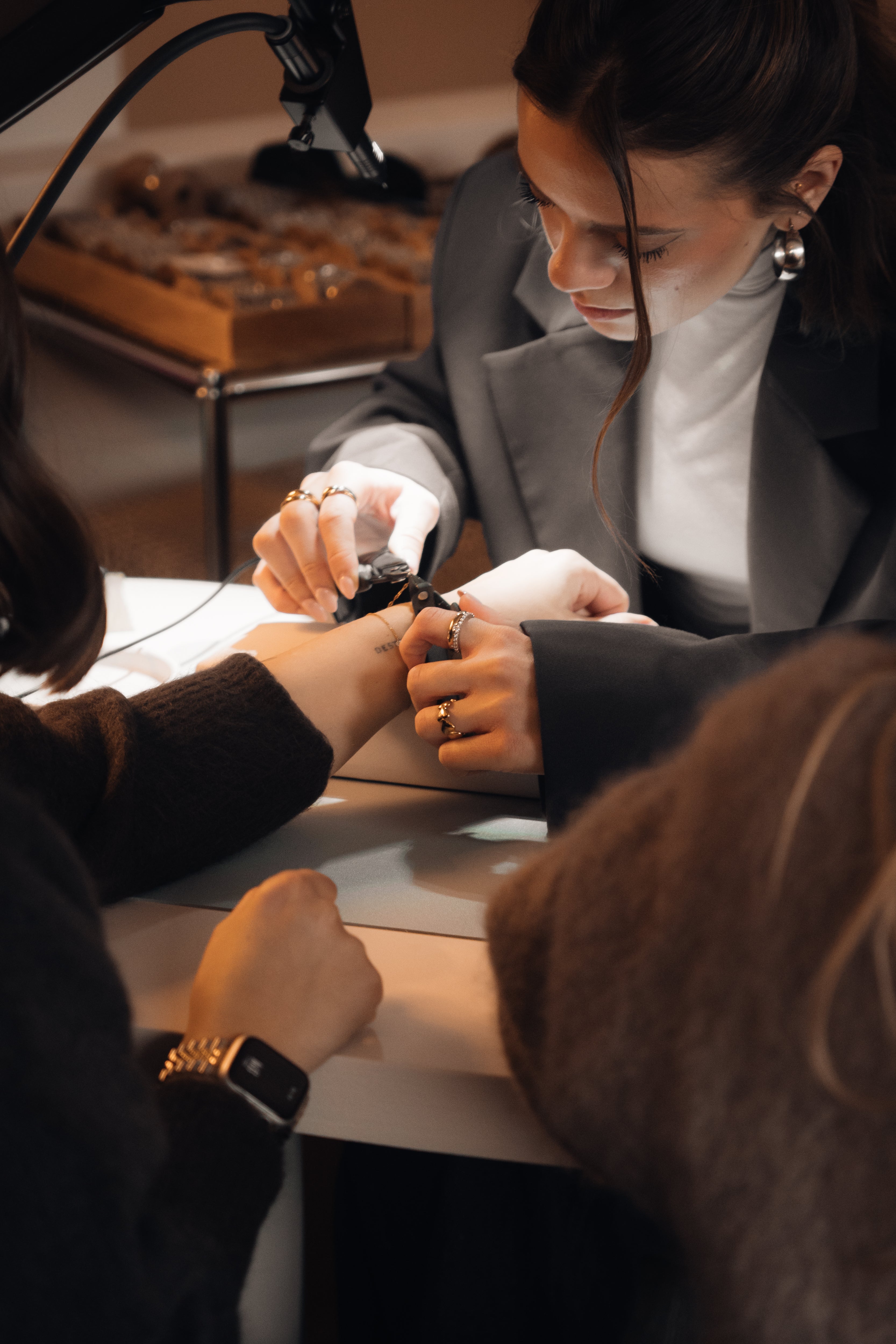 Bei deinem vorab online gebuchten Termin wird dein individuelles Wunscharmband innerhalb von etwa 15 Minuten passgenau an dein Handgelenk angepasst und dauerhaft verschweißt.